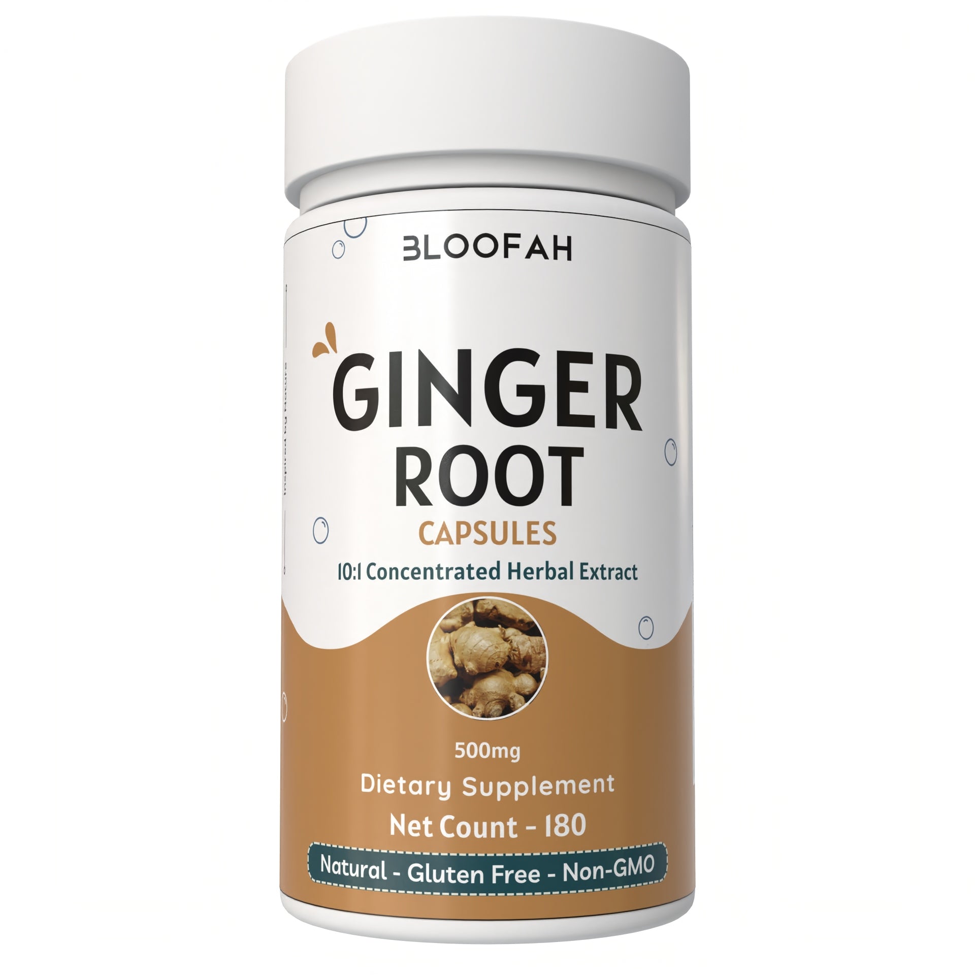 Elevate your wellness routine with Bloofah Ginger Capsules, featuring a potent 500mg dose of ginger extract per capsule. Our formula utilizes a concentrated 10:1 extract ratio, providing a robust and effective supplement derived from 100% pure Ginger (Zingiber officinale). Each capsule is designed to deliver the natural benefits of ginger in a convenient, easy-to-swallow form, free from GMOs, gluten, and artificial additives.