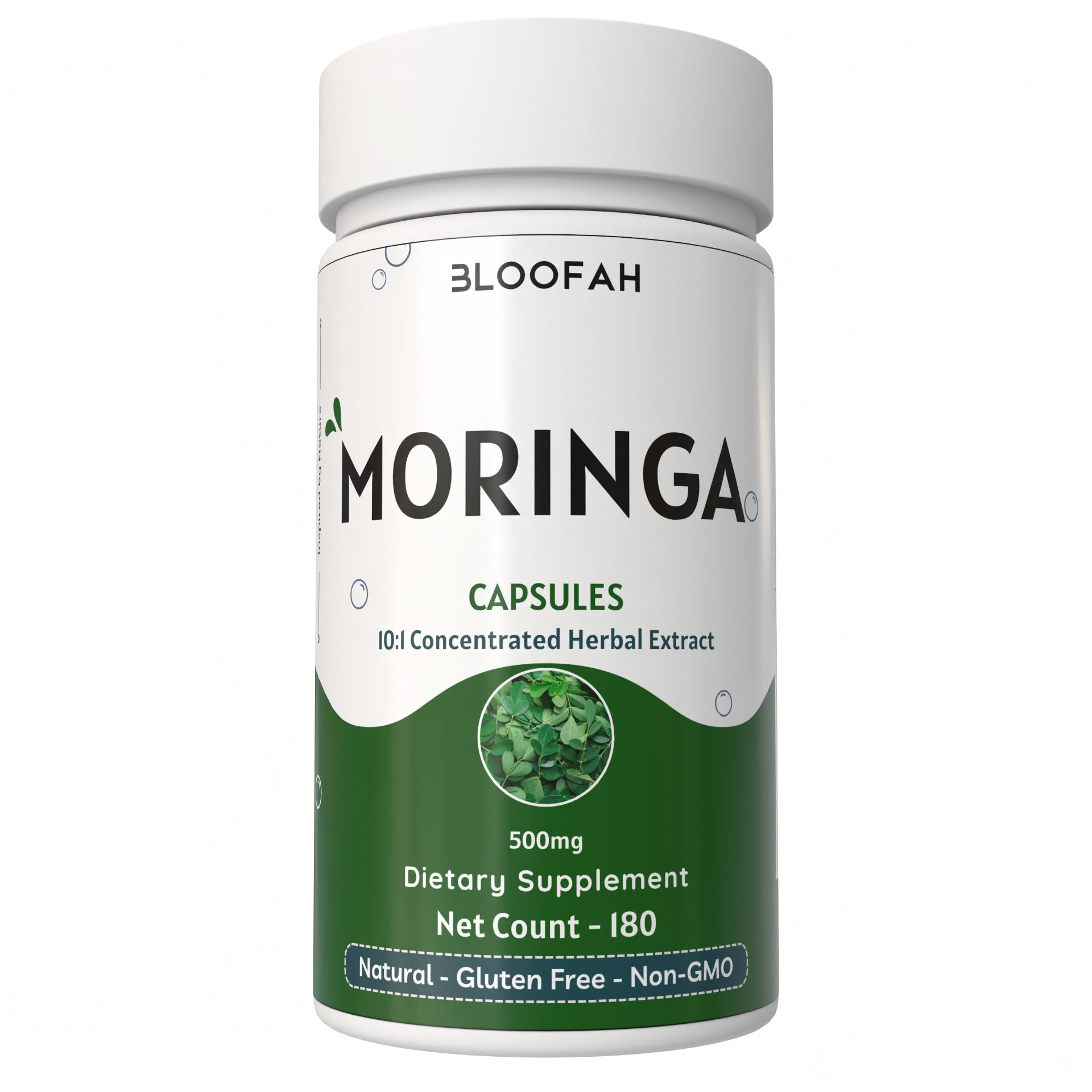 Elevate your wellness routine with Bloofah Moringa Oleifera Capsules, each delivering a potent 500mg dose of pure Moringa leaf powder. Our capsules utilize a high-quality 10:1 extract ratio, ensuring you receive a concentrated dose of Moringa Oleifera (Moringa leaf). Free from GMOs, gluten, and artificial additives, these capsules offer a natural and effective supplement.
