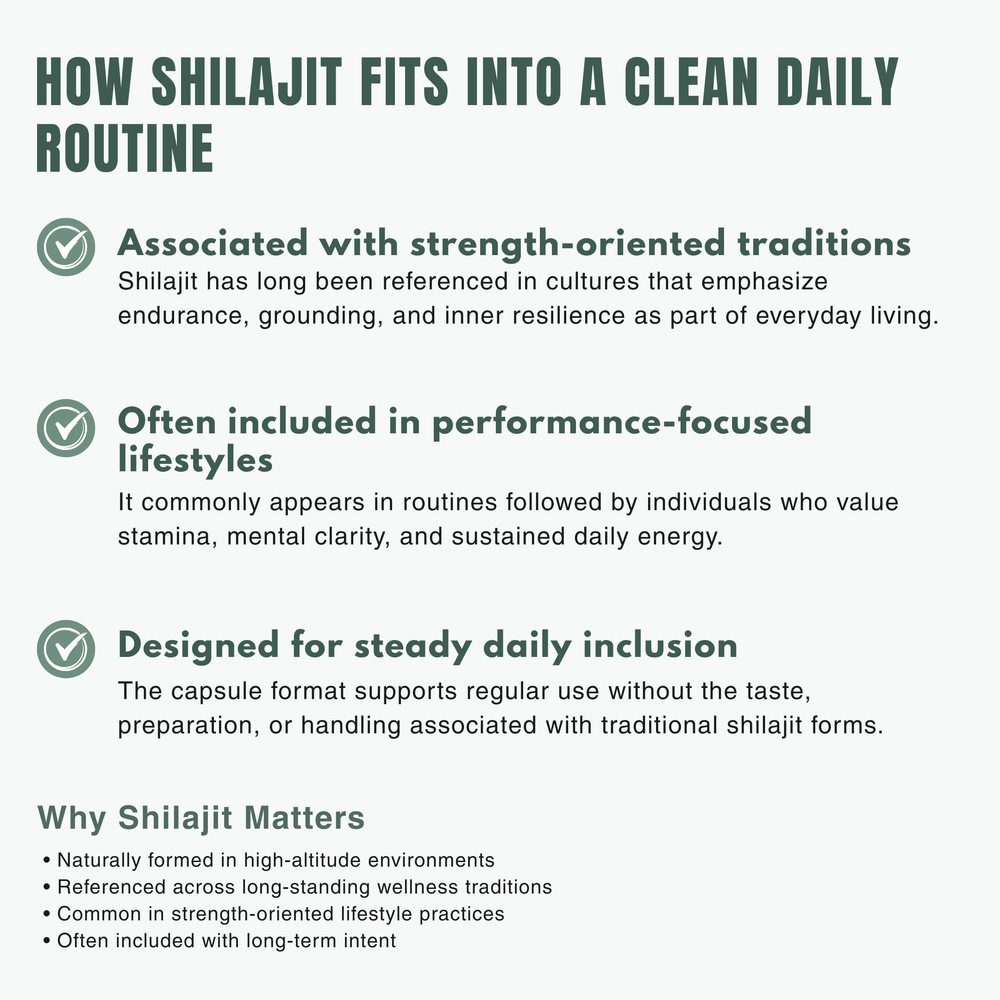 Shilajit has been traditionally valued in mountainous regions for centuries and has gained modern recognition for its naturally occurring mineral compounds, commonly used to support vitality, stamina, and overall balance when taken regularly.